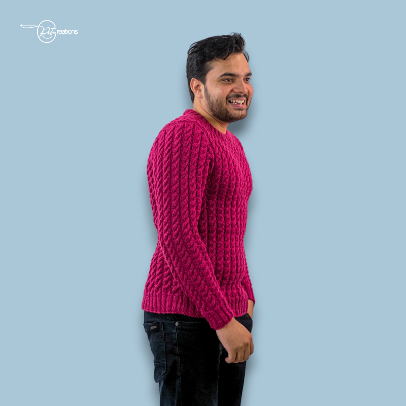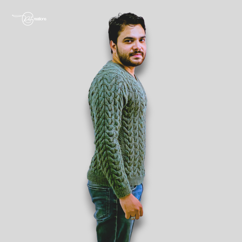 Elevate your style with our Mocha Cascade Cable Knit Sweater. Hand-knitted in a warm mocha brown, it features intricate vertical cable patterns that add a touch of classic charm to your wardrobe. This cozy sweater design ensures both warmth and style, making it an ideal choice for men who appreciate the rich warmth of mocha and classic detailing. Wrap yourself in the timeless beauty of this handcrafted masterpiece.